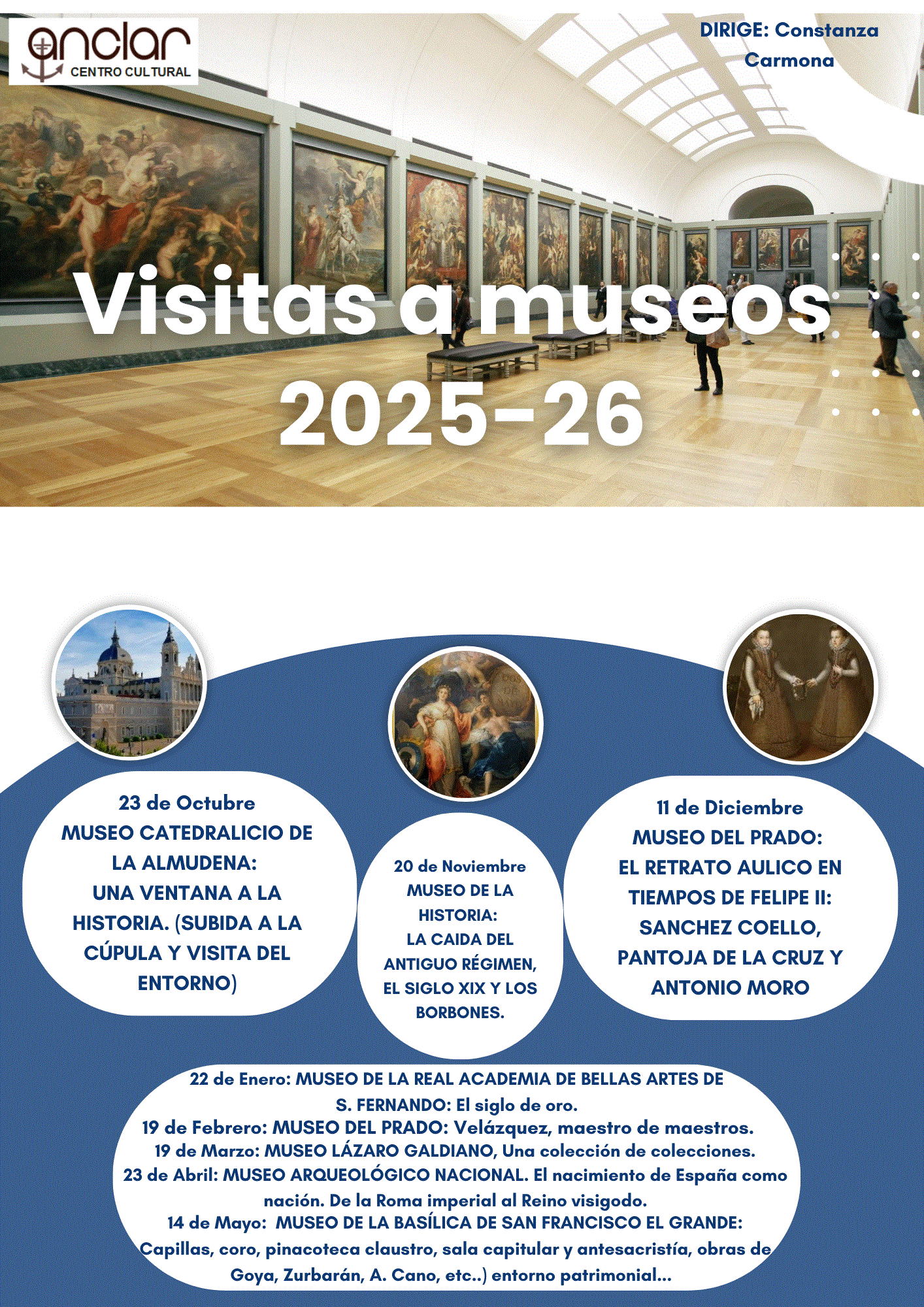 - 14 de Mayo: MUSEO DE LA BASÍLICA DE SAN FRANCISCO EL GRANDE: Capillas, coro, pinacoteca claustro, sala capitular y antesacristía, obras de Goya, Zurbarán, A. Cano, etc..) entorno patrimonial...